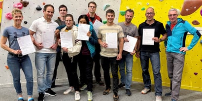 Die Kletterhalle THURCLIMB Weinfelden hat seit dem 28. Mai 2025 neun weitere lizenzierte VSBK-Kletterinstruktorinnen und -instruktoren. Nach bestandener Schlussprüfung folgt nun die Praktikumsphase bis im Sommer 2026.